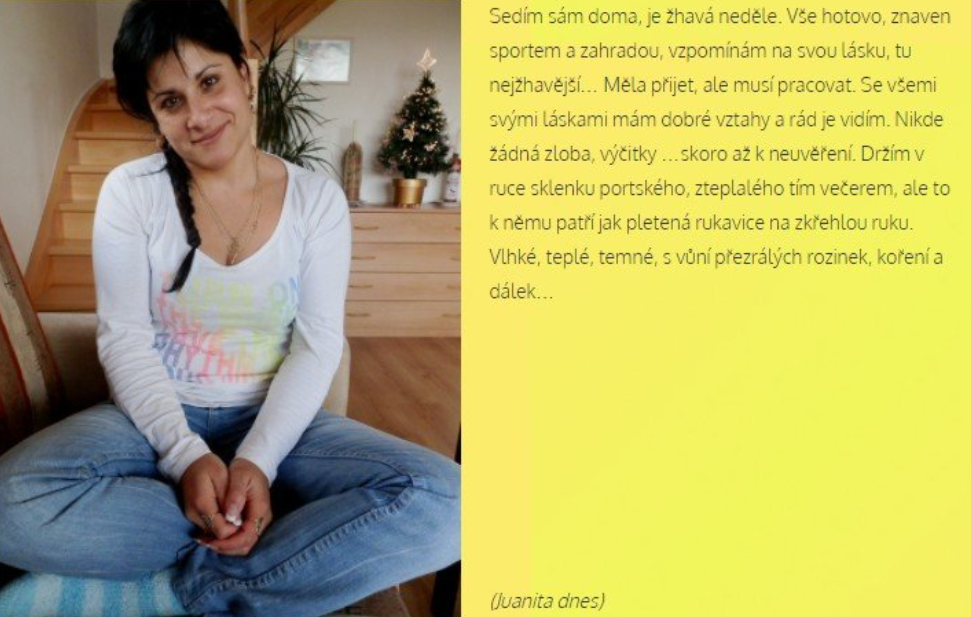 Když se mi blížila padesátka a já byl delší dobu sám, dostal jsem odvahu hnanou krizí středního věku a silným egem, pořídit si mladé děvče. Jednou přišla do mé ordinace se svou máti a já pocítil, že je to ona. Juanita je Cikánka a tehdy jí bylo 22 let. Ležela na vyšetřovacím lůžku a já prsty jemně zkoumal podbřišek, zda není zanícené slepé střevo. Nebylo. Zánět přišel ke mně… celou dobu se mi dívala do očí a bála se, co řeknu. „Nic se neděje, ale zítra ráno si sáhnu zas.“ To byla čistá doktořina. 40 kilometrů od nemocnice musí mít člověk jistotu…