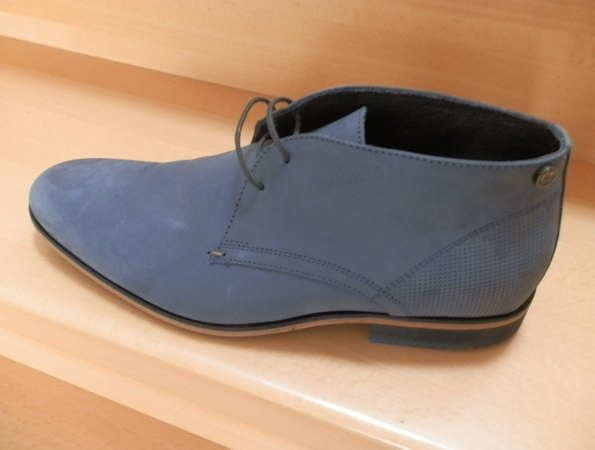 „Ted boty, Tomáši“, zavelela Radka. „Boty asi nemusim. Mám“ a zvedl jsem nohu s béžovou mokasínou. Radka si stoupla těsně ke mně a asi z patnácti centimetrů se mi podívala hluboko do očí, až trochu zašilhala. „Tomáši!“, řekla důrazně a lehce uklonila hlavu. „Potřebuješ boty!“ „Ajo.“ Přestal jsem raději odhalovat své názory na módu. Po jistých dohadech o velikostech postavila přede mne modré kotníčkové polobotky OTTO KERN. „Raduško, modré“?, ptám se nevěřícně. „Tomáši, modré!“ „Aha…“ a zkouším je. Pokývaly uznale hlavami a byly moje.